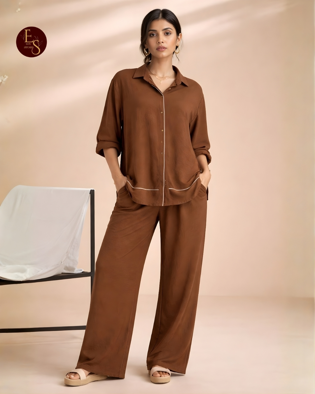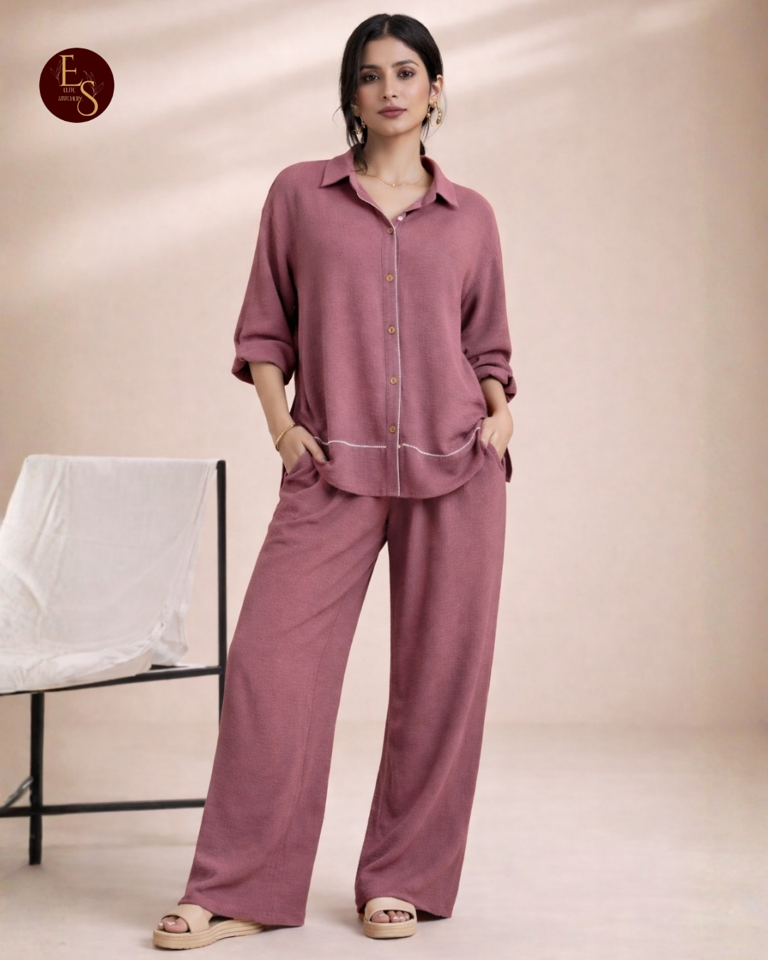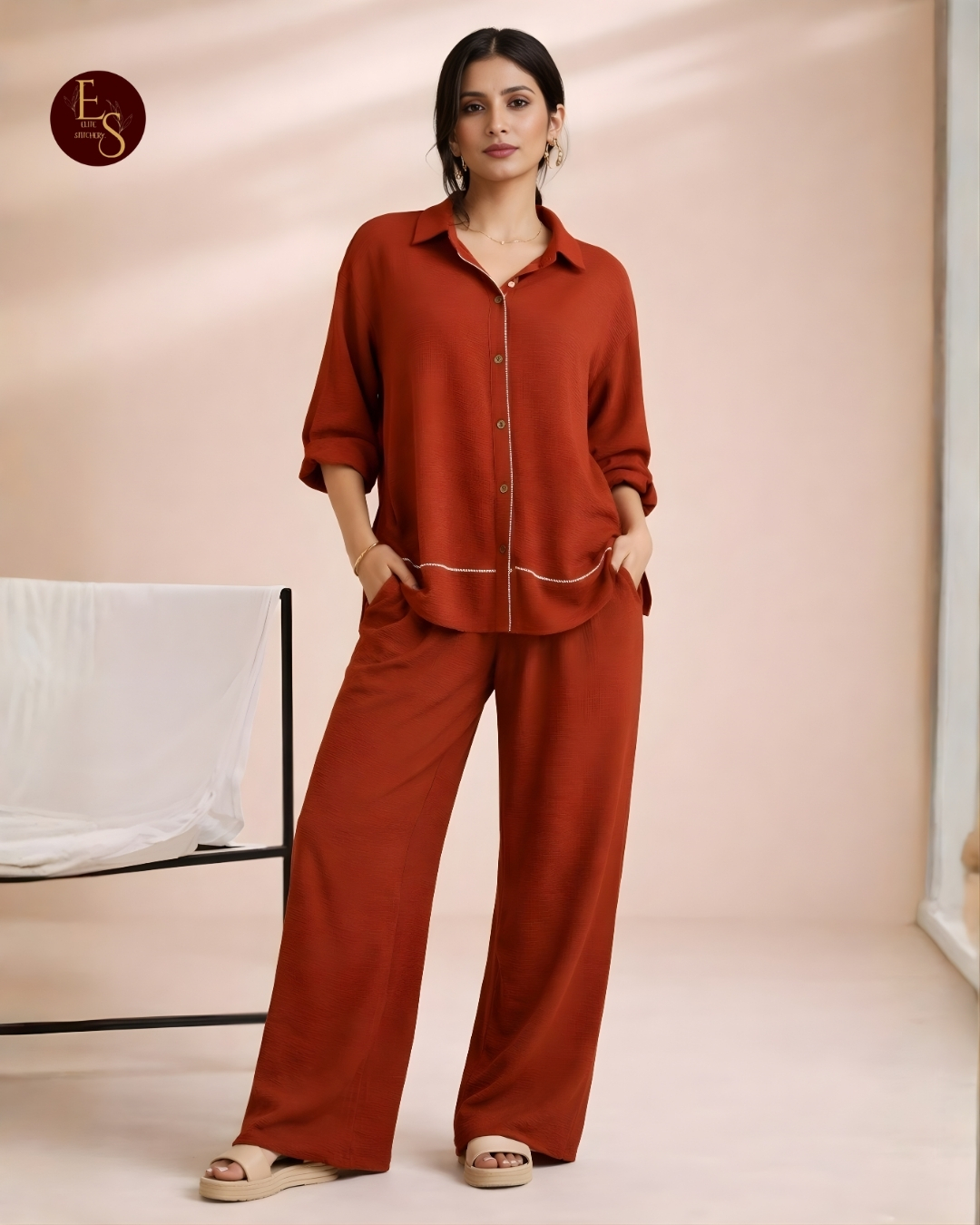 Experience sophistication with this Luxury UAE Designer Women’s Co-Ord Set, a meticulously crafted two-piece outfit available in Rosy Pink, Rust, and Brown. Made from premium-quality fabric, this set delivers exceptional comfort, a flawless fit, and effortless style, reflecting the elegance of a UAE-based designer brand.